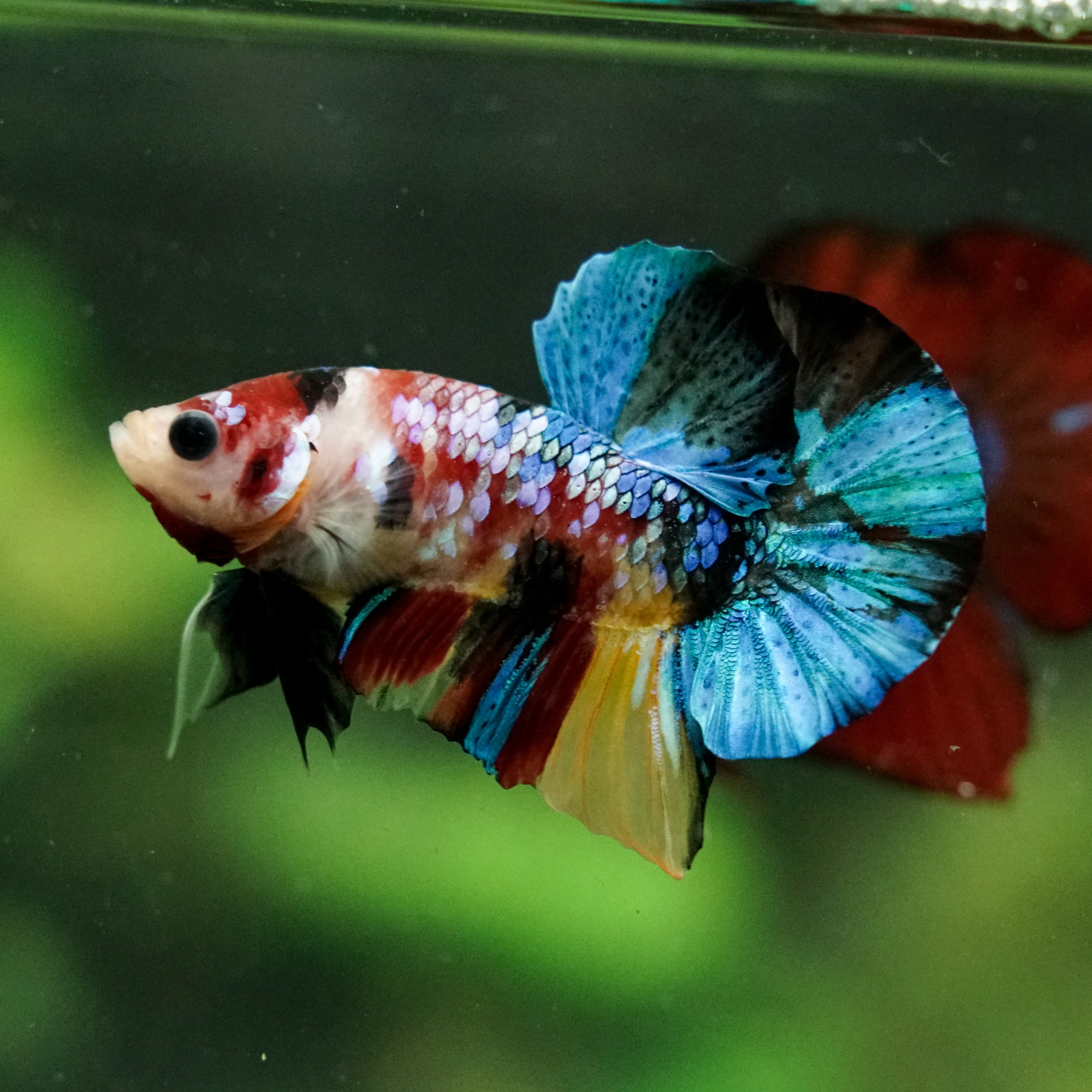 Please keep in mind that you are looking at the fish at young age and is still growing. Under good care, your Galaxy koi betta will become a beautiful fish with rich and vibrant colors.